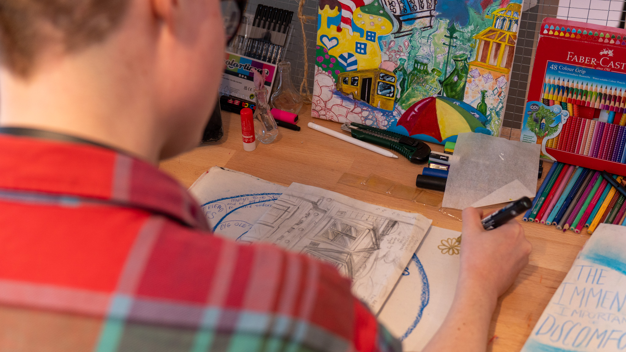 Det er en dobbeltudstilling, som præsenterer værker fra både 1. årseleverne på BGK Roskilde (15–25 år) og fra den nyopstartede Talentlinje for Billedkunst (13–18 år). På udstillingen vises også animationsfilmen Gadebilleder lavet af Talentlinjens elever.